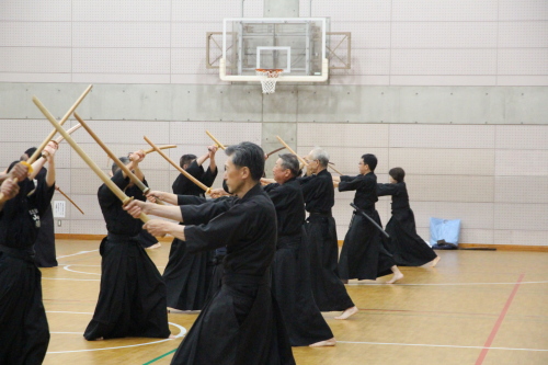 令和7年9月14日(日)諫早市小野体育館サブアリーナにおいて、標記講習会が開催されました。本講習会の参加者は段外4名、初段0名、二段3名、三段2名、四段3名、五段9名、六段4名、七段9名、八段1名、講師・補助講師2名の合計35名でした。