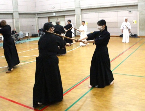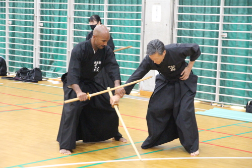 実践そのものの組み太刀講習会を緊張した中での打太刀、仕太刀を初心者でもわかりやすいやり方で解説と実演がすすめられました。