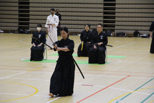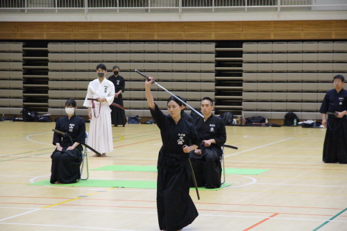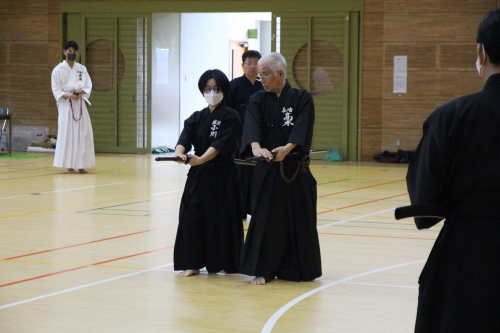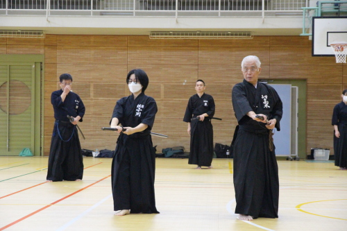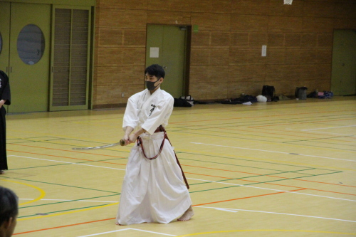 また、模擬試合を通じて他の参加者の真剣な居合に触れることで刺激を受け、より一層向上心が高まりました。模範演武では、先生方の演武を見ることで自身の癖や改善点が明確になり、今後の課題がはっきりしました。今回の講習会での経験を無駄にせず、日々の稽古や段位審査会に活かし、今後も精進していきたいと思います。