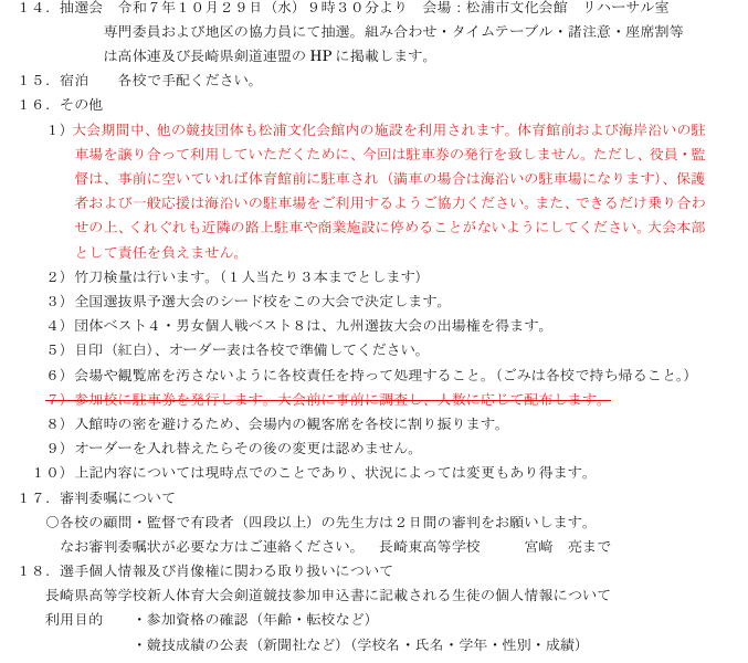 1.主 催 長崎県高等学校体育連盟 長崎県教育委員会 (一財)長崎県剣道連盟