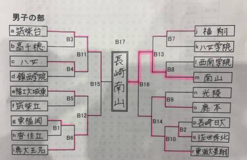 男子団体で長崎南山高校は決勝戦で筑紫台高校(福岡県)4-0 勝ちで 2年連続3回目の優勝を果たしました。佐世保北高校と長崎日大高校は決勝トーナメント1回戦で対戦し、佐世保北高校が勝利しましたが2回戦東海大星翔高校(熊本県)に敗れベスト16でした。女子団体では熊本商業高校(熊本県)が初優勝しました。西海学園高校は決勝トーナメント1回戦で岡山商科大付高校(岡山県)に敗れ、ベスト14でした。