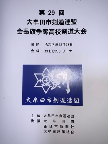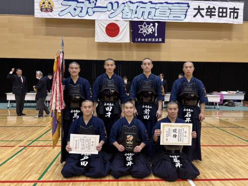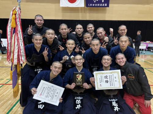 標記剣道大会が12月28日(日) 福岡県大牟田市のおおむたアリーナにて開催され、長崎南山高校が2年連続3回目の優勝をしました。