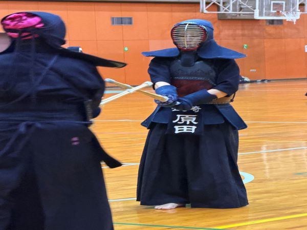 | 九州女子錬成会に参加して 錬成会では、始めにコーディネーショントレーニングを取り入れたゲームを行い、笑顔で交流しました。その後、基本稽古・技の稽古・地稽古、最後は7段の先生方が元に立ち、稽古を行いました。 年齢も段位も経験年数も様々の女性剣士が集まり、一緒に汗を流しました。 懇親会では、おいしい料理と楽しい余興で県外の方をもてなしました。それぞれがアイデアを出し合い、ノリと勢いに任せながらも真剣に打ち込む余興に、昼の稽古以上に会場が一つになり楽しい時間を過ごしました。 剣道を愛する人は、人を楽しませる力も最強だと感じました。まさに「交剣知愛」。剣道を通して人の和がつながった錬成大会となりました。 |