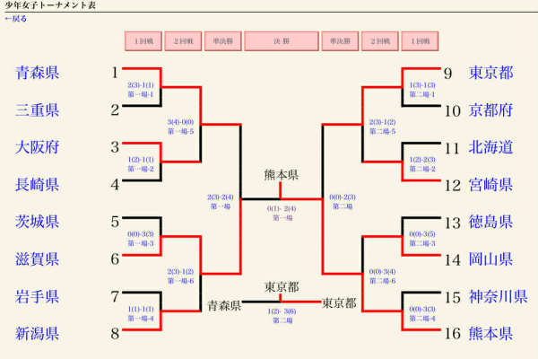 【少年女子】 1回戦敗退 【1回戦】 △長崎県 1‐1 大阪府○ 本数負け