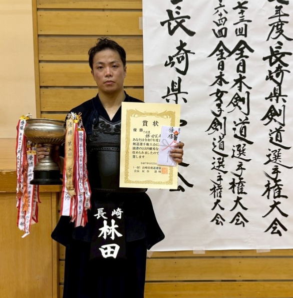 【結果報告】 標記の大会が令和7年11月3日(月・祝)日本武道館(東京都千代田区)で 開催されました。令和7年6月23日(日)の 長崎県予選会で優勝した男子代表 林田匡平(学剣連/島原高教)と長崎県予選準優勝した女子代表 大園望夏(長崎県警)が出場しました。林田匡平は準々決勝戦で本県出身松ア賢士郎(茨城県)にメンを先取されましたが、慌てることなく、メンを連取し、準決勝戦へ進出した。準決勝戦は、優勝した星子啓太(東京都)選手にメンで先取されましたが、メンを取り返し、一進一退の攻防を続けましたが、メンを打突したところをコテを奪われ、惜しくも決勝進出とはなりませんでした。大園望夏は1回戦で本県出身竹中 美帆(茨城県)に延長戦の末にメ ンをとられ惜敗でした。 |