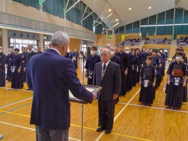 なお演武・試合の開始に先立ち、全日本剣道連盟表彰がありました。
