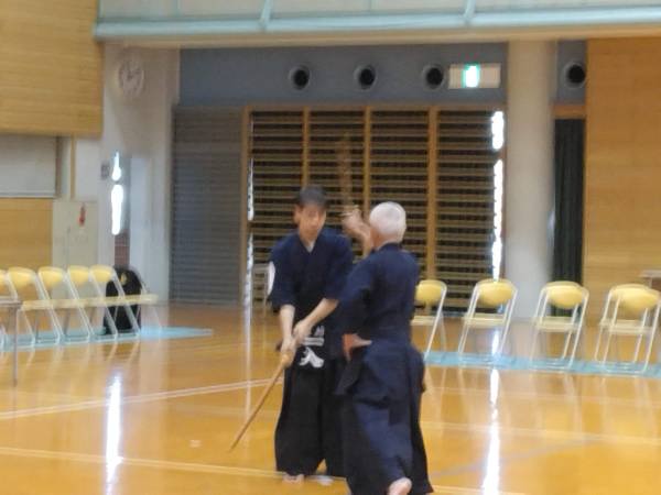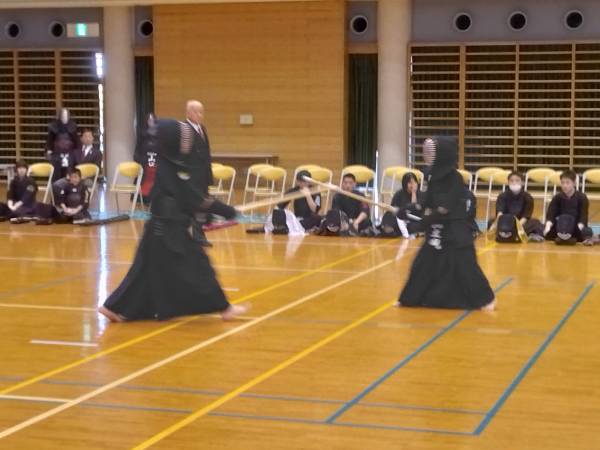 紅白戦後には剣道八段の先生方による模範立会、初めての試みである灰谷達明範士に掛る模範稽古も行なわれました。