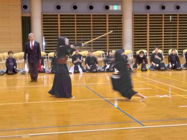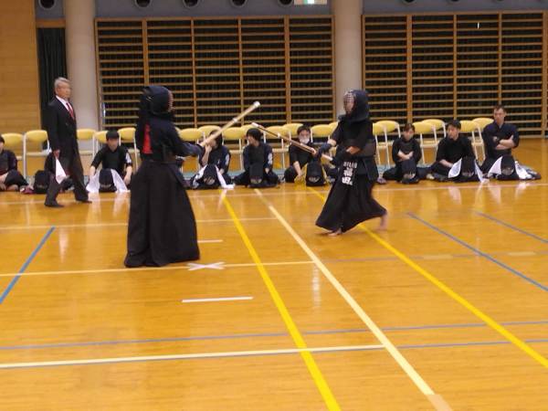 試合は日本剣道形、紅白戦(居合道、杖道、小学生剣道、中学生剣道、高校生剣道、一般剣道)があり、それぞれ見応えのある試合が展開されました。紅白戦結果は白軍の6勝5敗13分の勝利でした。