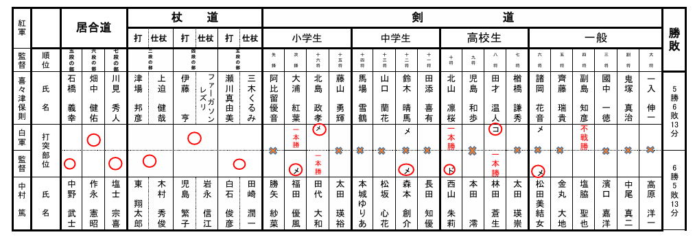 | 令和7年度(2025年)長崎県下剣道祭紅白試合 結果 |