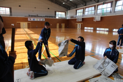 | 実技@ 木刀での新聞斬り体験も熱心に取り組む | 実技A 所作 ・・・木刀の握り方、振り方、摺り足 | ||||||||||||||||||||||||||||||||||||||||||||||||